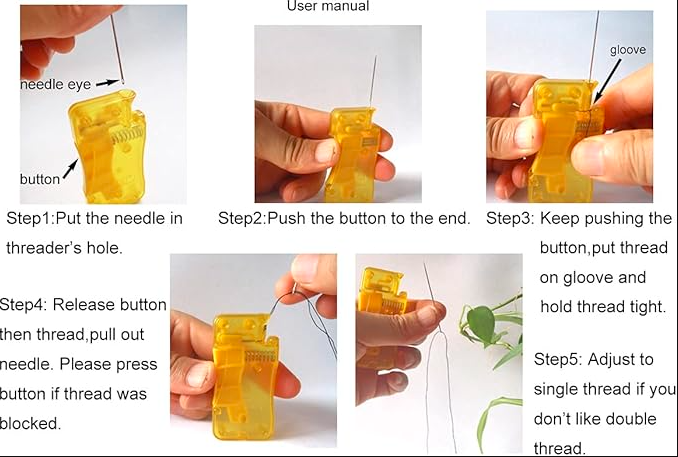 Designed for ease of use, this device allows you to simply place the needle in the slot, press a button, and let the machine do the work. Within seconds, your needle is perfectly threaded, ready for sewing. Whether you're working on delicate fabric or heavy materials, this tool makes threading a breeze. 🧵🪡