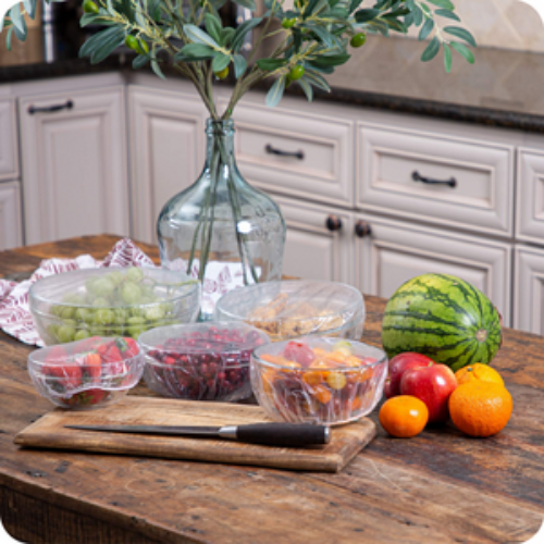 These elastic food storage covers can be stretched and wrapped around any bowls and plates.